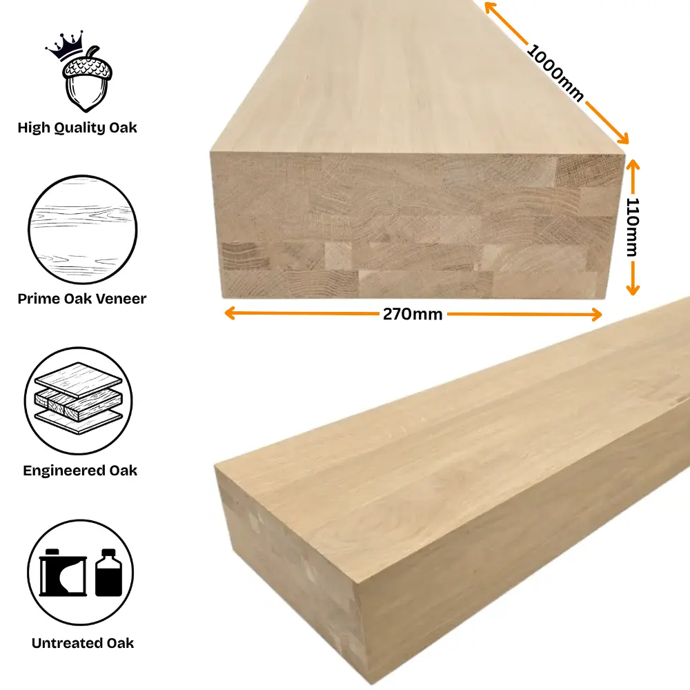1 x Oak Tread for Floating Staircase Ungrooved 110(H) x 270(W) x 1000mm (L).