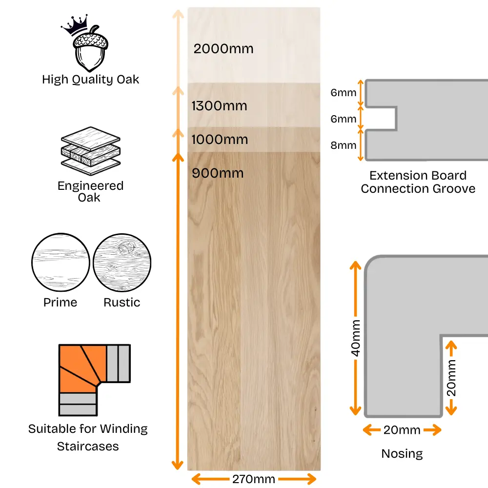 The Oak Tread Grooved is an integral component of this cladding system, designed to retrofit over existing staircase treads. Perfect for renovations, it provides a stylish and modern finish while ensuring effortless integration with other elements of the Modern Range. Whether you’re refreshing tired stairs or upgrading your home’s design, this tread delivers a clean, polished result.