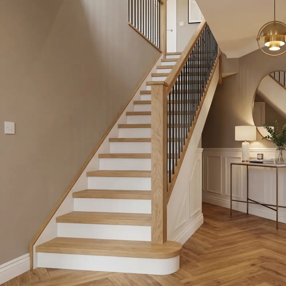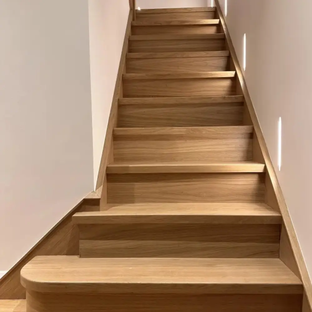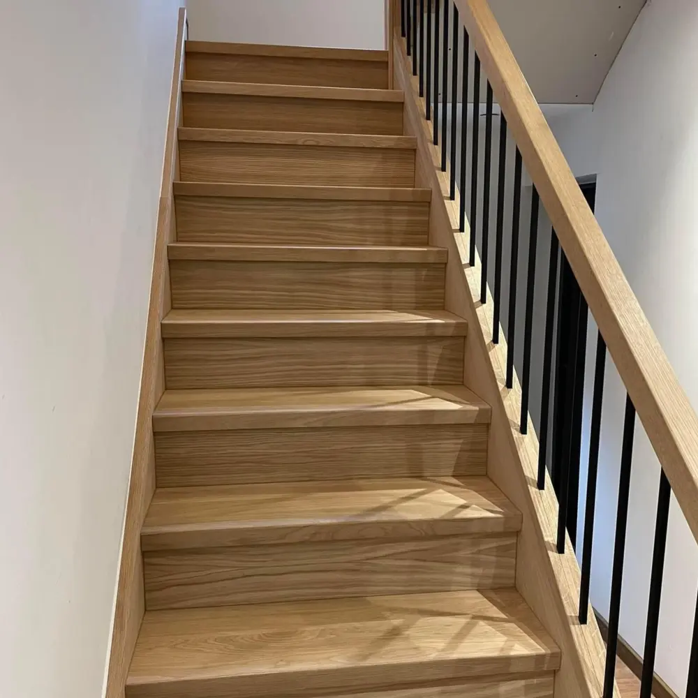 The Prime Oak Steps Cladding – Modern Range is a premium stair cladding system designed to transform your staircase with a sleek, contemporary aesthetic. Crafted from high-quality Prime Oak, this range features a bold 40mm nosing that provides a thicker, more substantial appearance, making it perfect for modern interiors. It offers a refined and cohesive finish, ideal for elevating the look of your home.