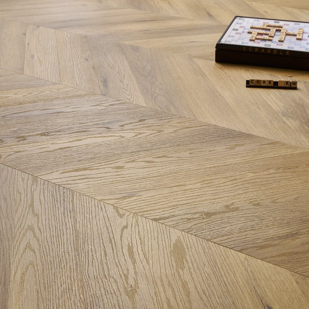The Amaron Chevron collection by Arbiton is revolutionising the flooring industry with its cutting-edge 5G click technology. This pioneering innovation guarantees an effortless and smooth installation experience, setting a new standard for convenience and efficiency. Unlike the complicated and time-consuming traditional methods typically required for intricate chevron patterns, the 5G click technology simplifies the process dramatically. This technology not only speeds up installation but also ensures a flawless alignment and secure locking of the flooring panels, enhancing both the aesthetic appeal and durability of the flooring. Amaron Chevron’s commitment to innovation provides customers with a high-quality, stress-free solution for achieving the elegant look of chevron flooring without the usual complexities.