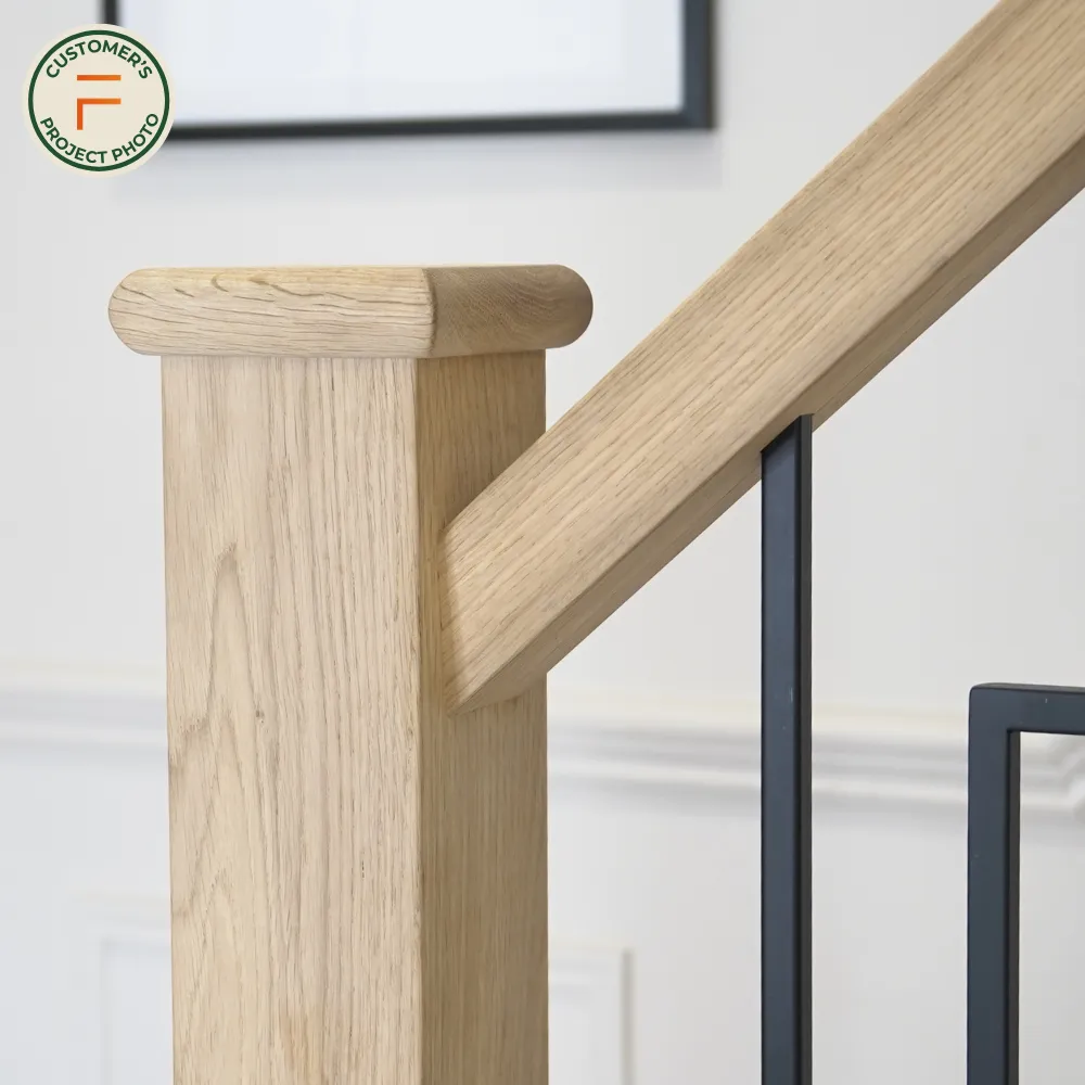 The Oak Plain Square Newel Post is a classic, versatile component designed to provide both strength and style to your staircase. Crafted from engineered oak with a 3mm Prime Grade oak layer on the surface, it offers the natural beauty of oak with a smooth, ready-to-finish appearance. Each post is supplied as a complete full-length newel, incorporating both the base and the upright section for a seamless look.